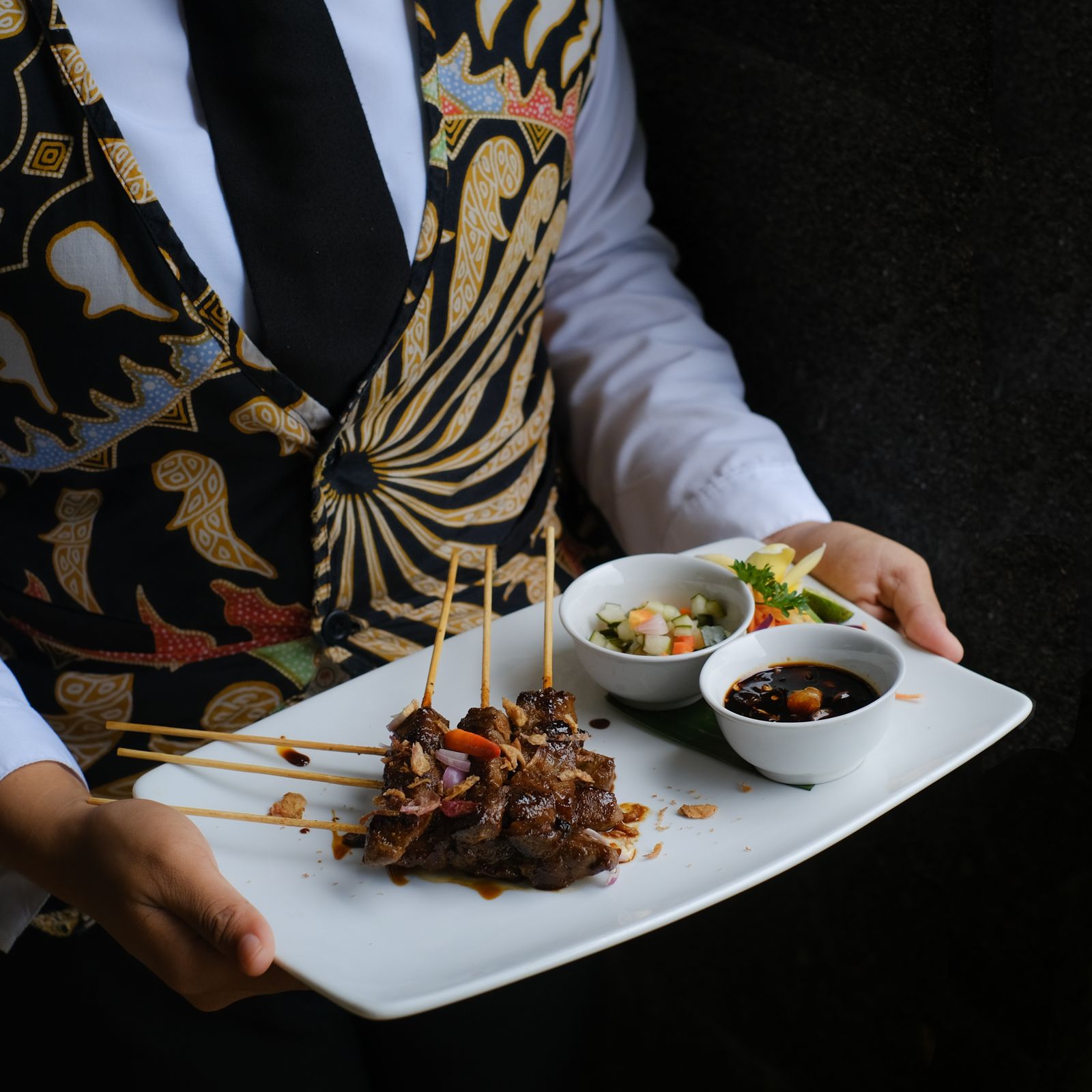 Sweet Beef Skewer served with Pickles and Sambal Kecap